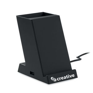 Caricatore wireless a doppia bobina da 15W con portapenne in ABS.Uscita: DC 9V/1.67A (15W).