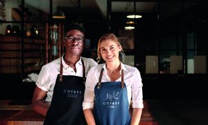 Grembiule in cotone organico 340gr con 2 tasche frontali.