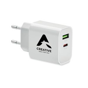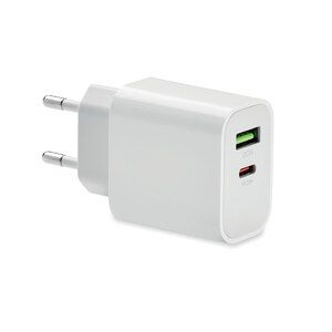 PORT Caricatore USB a 2 porte - Bianco - GiftRetail MO6879