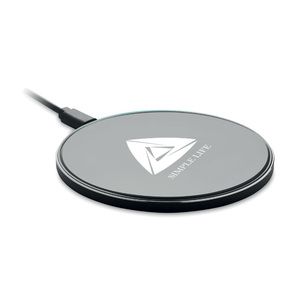 Caricatore wireless in alluminio da 10W con vetro sulla parte superiore.